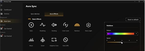 - V meniju Aura Sync -+ Aura Effects lahko spreminjate RGB osvetlitev v vašem računalniku.